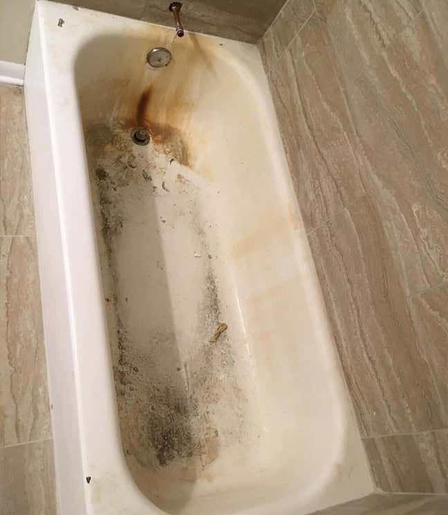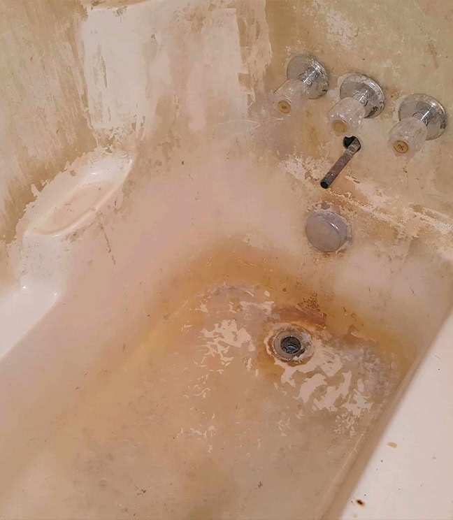 Tub/surround unit heavily corroded in Aurora, IL. – Before refinishing