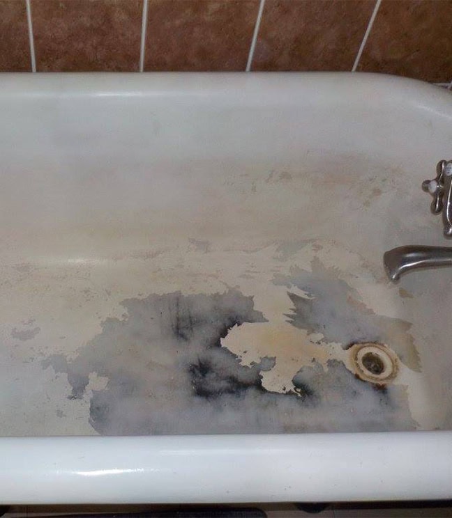 The inside of an old and very work claw foot tub in Plainfield, IL. – Before refinishing