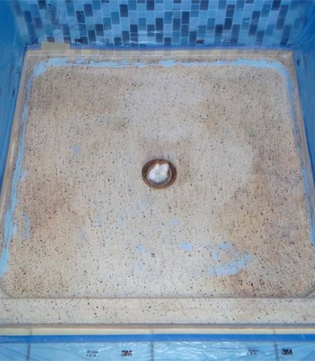 Worn and stained shower base before refinishing in Downers Grove, IL