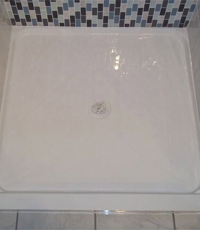 Shower base after refinishing in Marshmallow white in Downers Grove, IL