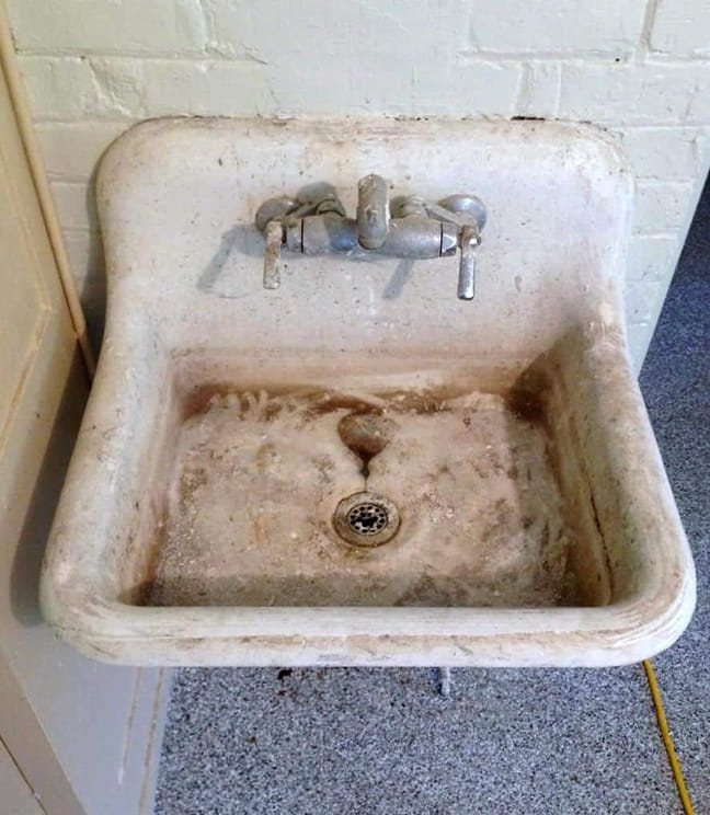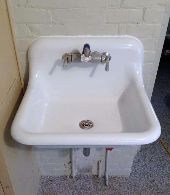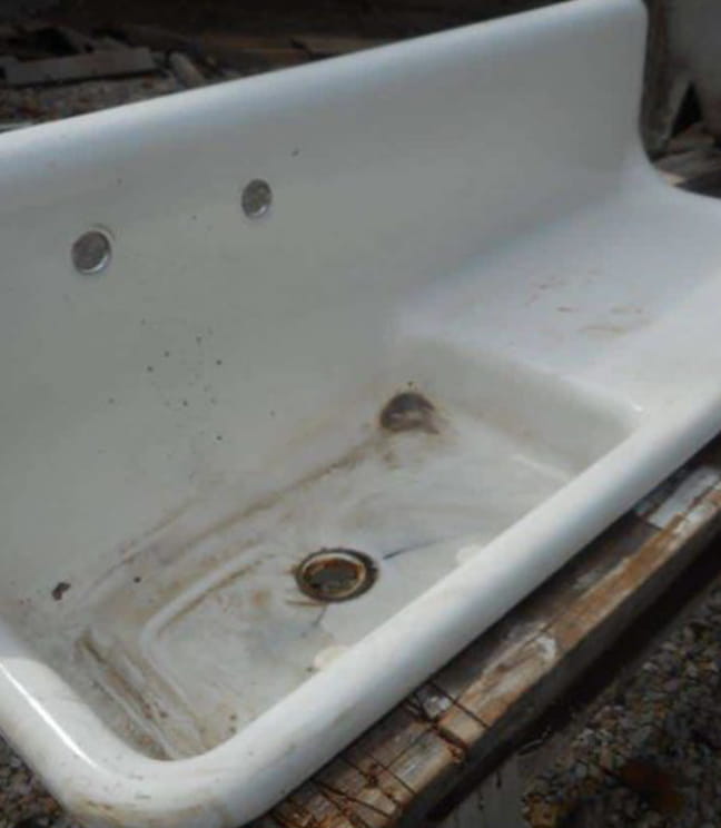 Old antique porcelain sink with single washboard before refinishing in Morris IL