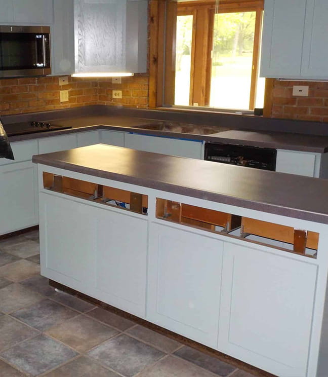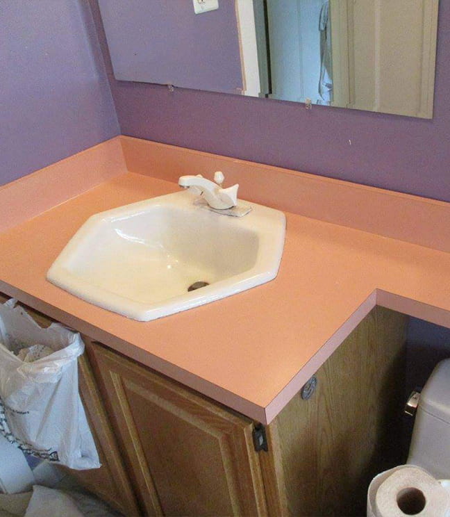 Out of date laminate countertops before refinishing in Bolingbrook, IL.