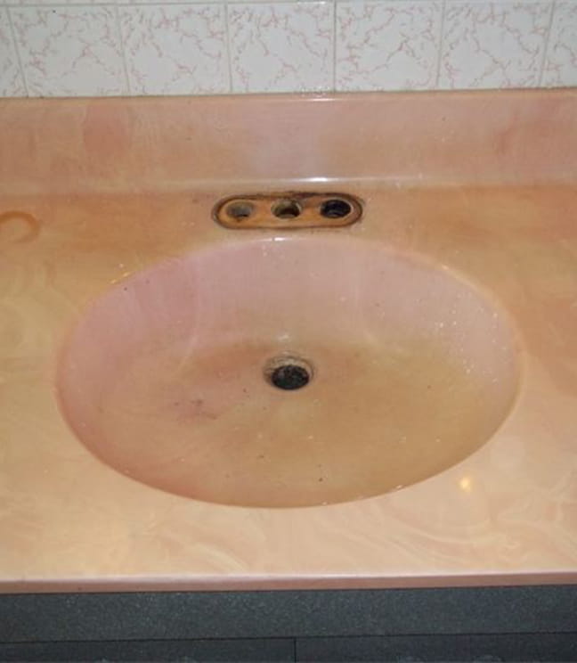 Peach Colored Sink before refinishing in Oakbrook, IL.